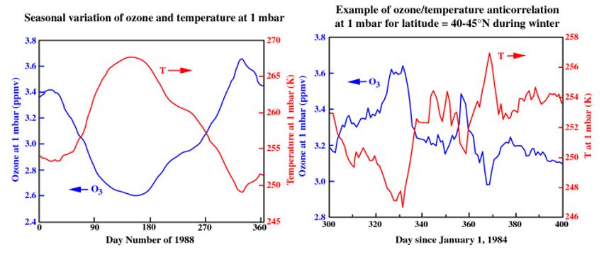 En annen artikkel sammenlikner variasjonen i solaktiviteten, ozon-konsentrasjonen og temperaturen på jorda: